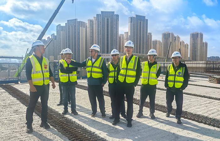 仲金榮一行深入施工現場,實地檢查項目安全生產、工程質量、建設進度及文明施工等情況,詳細了解項目建設進展、剩余工程量、進度計劃,以及項目推進中亟待解決的困難和問題,并提出指導意見及建議。