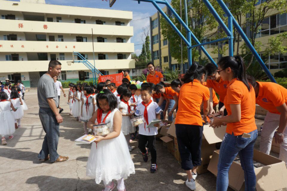 給小朋友們發(fā)蛋糕及學(xué)習(xí)用品