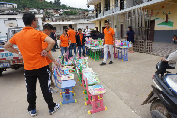 “我要米奇!我要熊二!我要……”在玉屏村幼兒園,孩子們看到五顏六色的小桌椅都禁不住七嘴八舌地開始挑選起自己喜愛的圖案。玉屏村小學(xué)里孩子們?cè)谛iL(zhǎng)組織下有序地從橙色衣服叔叔和阿姨手中的小蛋糕和學(xué)習(xí)用品,嘴里不停地說(shuō)著“謝謝”,少先隊(duì)員們則不時(shí)地敬禮表示謝意。漢邑村小學(xué)孩子們用精彩的鼓樂表演來(lái)表達(dá)對(duì)彌玉高速象山試驗(yàn)段送來(lái)學(xué)習(xí)用品的謝意。最后一站曲陀關(guān)小學(xué),當(dāng)“橙色小分隊(duì)”載著滿滿一車的盆景到達(dá)時(shí),孩子們已經(jīng)穿著整齊的服裝在列隊(duì)歡迎,讓人感動(dòng)的是,車才停穩(wěn),高年級(jí)的同學(xué)們立即七手八腳的幫忙把盆栽搬下車,孩子們一聲聲的驚嘆聲以及臉上開心的神情讓大家感到無(wú)比的欣慰。