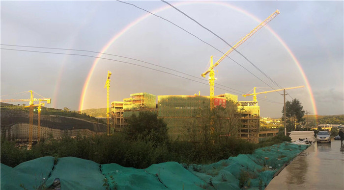 每當(dāng)看到太陽(yáng)拉到遠(yuǎn)方的地平線上、雨后的一道道彩虹,就覺(jué)得工地上的一切似乎都顯得如此生機(jī)勃勃,陣陣風(fēng)迎面吹來(lái),才發(fā)現(xiàn)我其實(shí)早已經(jīng)習(xí)慣了風(fēng)中的沙土,同事們頭上的安全帽映著藍(lán)天白云顯得格外耀眼,這就是我和車行天下汽車城(二期)項(xiàng)目管理人員的工地生活。大家雖然常年漂泊在外,很少回家,但是因?yàn)橛辛祟I(lǐng)導(dǎo)的關(guān)懷,同事的相知、相伴,大家心里早已經(jīng)把車行天下汽車城(二期)項(xiàng)目部每一人當(dāng)成了家人,項(xiàng)目部就是我的第二個(gè)家,一個(gè)有夢(mèng)想、有愛(ài)的地方。我相信我們眼前的困難只是暫時(shí)的,我們大家在一起努力,攜手前行,一定能見(jiàn)到雨后的彩虹。