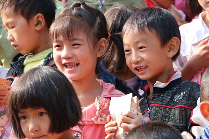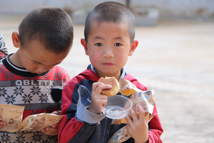 當(dāng)我們把月餅送到孩子們手中時(shí),有的孩子忍不住現(xiàn)場品嘗起美味的月餅來,有的孩子則拿著月餅左瞧瞧、右看看,舍不得吃掉。“小朋友,你怎么不吃呢?”“我要給我妹妹帶回去,媽媽生病了,爸爸在外打工掙錢,我們家沒買過這種粑粑吃?!毙∧泻⒚鎸ξ覀円稽c(diǎn)也不害羞,而是一本正經(jīng)地講述著自己不吃月餅的“小秘密”。