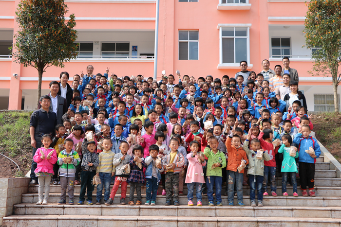 學(xué)校里,孩子們正在課間休息,看到我們的到來,他們快速跑過來,將我們圍了起來?!巴瑢W(xué)們,這些大哥哥、大姐姐都是云南建投集團(tuán)駐村扶貧工作隊(duì)的,他們在中秋節(jié)來看望大家了,大家先排好隊(duì)!”孩子們在老師的招呼下,迅速有序地站成了一列列整齊的隊(duì)伍,他們的臉上帶著燦爛的笑容,眼里充滿了好奇和期待。