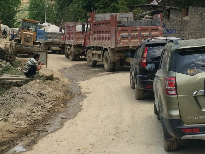 如果說龍頭山項(xiàng)目是因“快”而難,那么樂紅項(xiàng)目就是因?yàn)椤岸隆倍y,到過樂紅鎮(zhèn)的每個(gè)人對此都深有感觸。項(xiàng)目必經(jīng)的交通要道在地震后路況復(fù)雜,從龍頭山到樂紅鎮(zhèn)的鄉(xiāng)村道路在地震中遭到破壞正在維修,路上擁堵點(diǎn)多。所以盡管項(xiàng)目不大,但由于路況原因交通不暢,各項(xiàng)工作都很難開展。