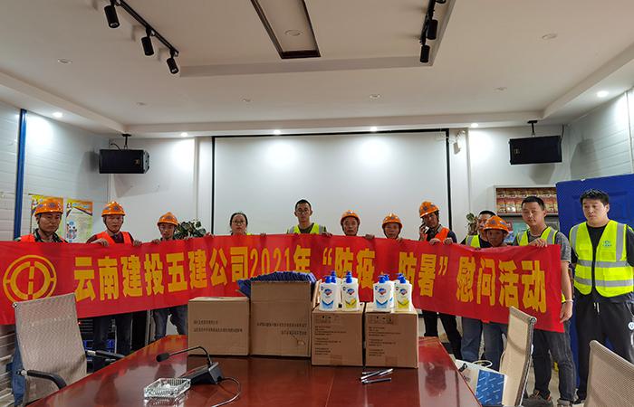 7月23日,安二部工會(huì)主席李榕玲、安全總監(jiān)楊潤(rùn)云到五華區(qū)人民醫(yī)院暨五華區(qū)康養(yǎng)中心項(xiàng)目部開展“防疫、防暑”慰問活動(dòng),為不畏高溫酷暑,仍堅(jiān)守在施工現(xiàn)場(chǎng)一線的職工、農(nóng)名工送去毛巾、洗手液等防暑降溫慰問品。