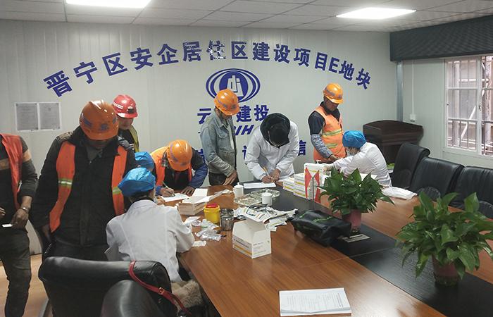 本次健康體檢是根據(jù)晉寧區(qū)住建局疾控中心組織開(kāi)展要求,由晉寧區(qū)人民醫(yī)院醫(yī)務(wù)人員來(lái)項(xiàng)目部對(duì)管理人員及班組人員一線全體人員進(jìn)行的健康體檢,此次主要是采取抽血采樣為主。醫(yī)務(wù)工作人員對(duì)每個(gè)人員來(lái)檢查的姓名、性別、身份證、電話號(hào)碼等進(jìn)行詳細(xì)登記,然后對(duì)檢查者進(jìn)行抽血取樣,并對(duì)項(xiàng)目部全體人員進(jìn)行各種疾病預(yù)防及加強(qiáng)做好新冠病毒疫情預(yù)防的宣傳。