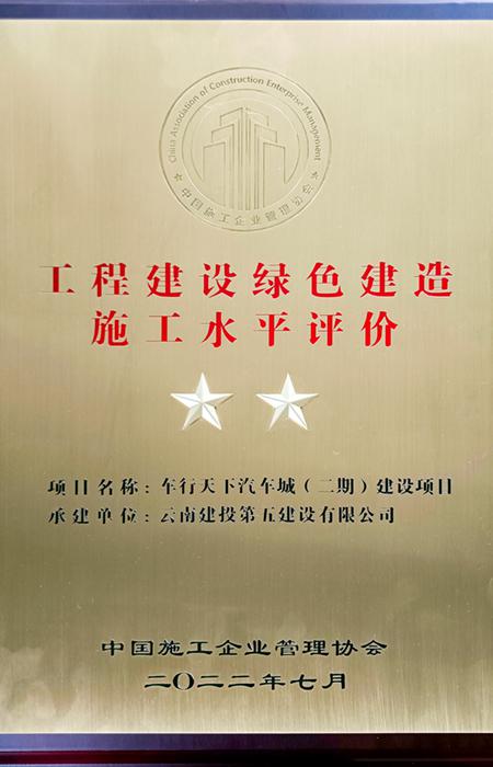 近日,中國施工企業(yè)管理協(xié)會發(fā)布了2022年“工程建設(shè)綠色建造施工水平評價”結(jié)果,公司車行天下汽車城(二期)建設(shè)項(xiàng)目獲二星評價。