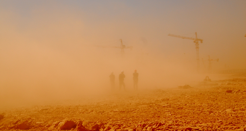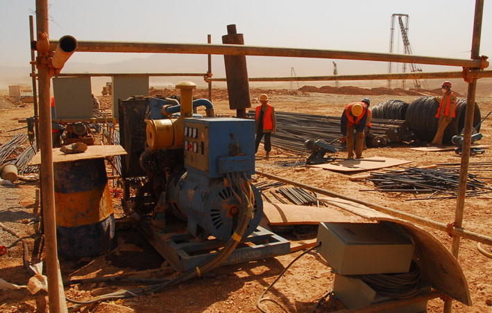 為進(jìn)一步搞好A2標(biāo)段的950多棵人工挖孔樁施工,公司組建了由公司直接管理的新機(jī)場(chǎng)工程項(xiàng)目部。工地上沒有水,施工用水和生活用水就購(gòu)買從7-8公里以外拉來的水,項(xiàng)目部在各個(gè)施工點(diǎn)搭建了十幾個(gè)臨時(shí)水池蓄水,以保證施工正常進(jìn)行;工地上沒有電,為了保證施工用電,工地上自備了多臺(tái)柴油發(fā)電機(jī)發(fā)電 ;春節(jié)后進(jìn)入昆明的多風(fēng)季節(jié),久旱無(wú)雨的新機(jī)場(chǎng)工地上,到處塵土飛揚(yáng)。項(xiàng)目部為每一個(gè)人購(gòu)置了口罩,不管工地上氣溫多高,都帶著口罩作業(yè),全體人員天天都灰頭土臉地奮戰(zhàn)在工地上。