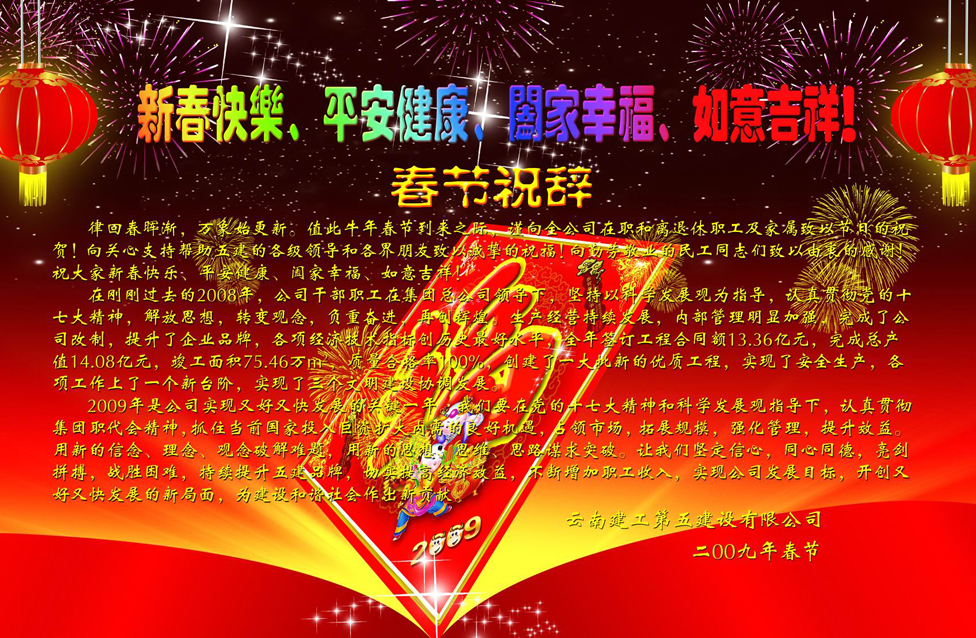 值此牛年春節(jié)到來之際,謹向全公司在職和離退休職工及家屬致以節(jié)日的祝賀!