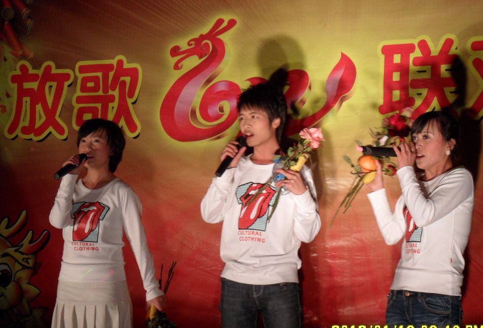 圖為安裝公司領(lǐng)導(dǎo)班子為晚會(huì)助興