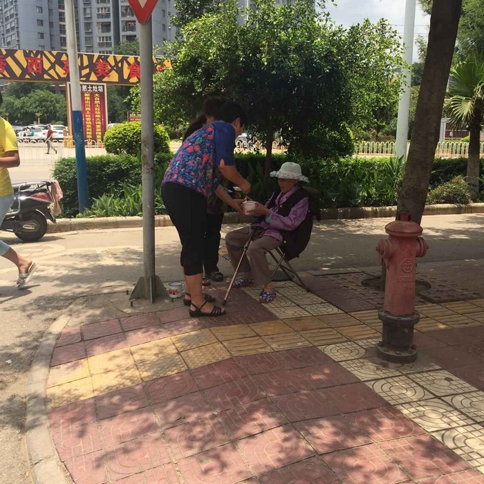 王師安撫老人說道:“你放心,我們一定會幫你的,你等等,我先給你打點飯吃?!痹诠鹃T衛(wèi)室拿了個凳子給老人坐下后,王師又急急忙忙跑回食堂,還好食堂員工們還在吃飯,王師打了一盒飯菜趕緊送到老人手中。
