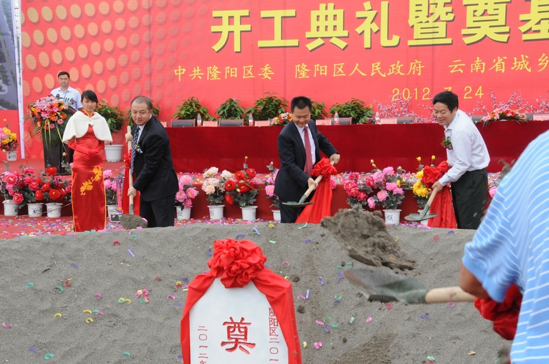 7月24日,保山市隆陽區(qū)2012年保障性住房建設(shè)項目舉行開工奠基儀式,保山市委常委,市政法委書記趙德光,集團公司黨委副書記、紀委書記張戰(zhàn)國,集團公司總經(jīng)理助理、城鄉(xiāng)建投公司董事長等領(lǐng)導(dǎo)出席奠基儀式,并共同為項目開工培土奠基。公司董事長楊福和,公司黨委書記、城鄉(xiāng)投保山分公司(指揮部)總經(jīng)理李文智,公司總經(jīng)理魏華等班子成員參加儀式。