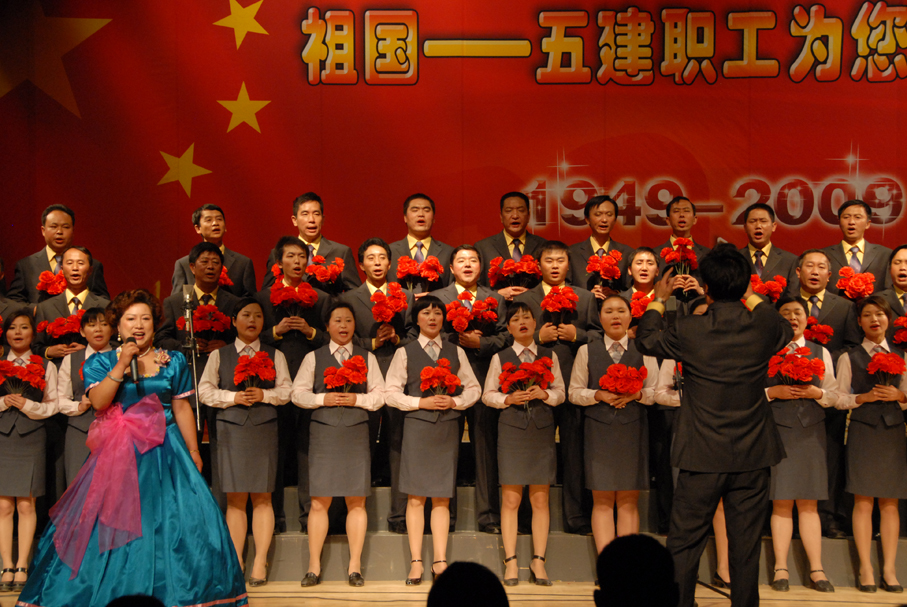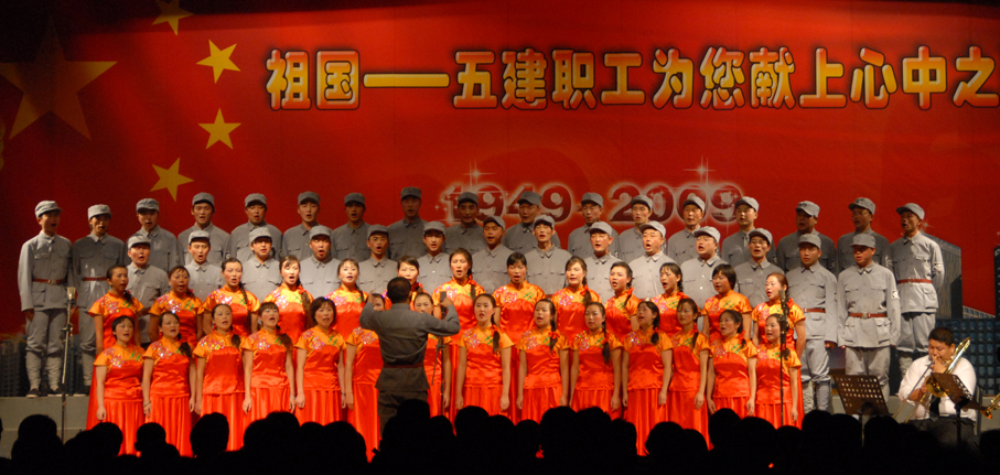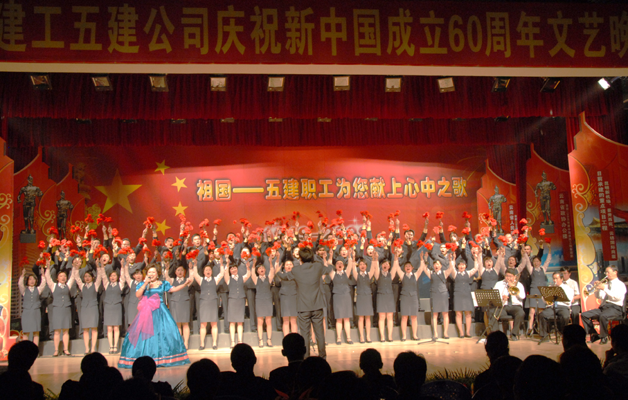 五建公司于9月28日晚在公司禮堂舉辦以《祖國――五建職工為你獻上心中的歌》為主題的文藝晚會,慶祝中華人民共和國建立六十周年。來自公司和基層22個單位的700多名在職及退休職工,共演出了19個節(jié)目,大家以飽滿的熱情祝福偉大的社會主義祖國,用嘹亮的歌聲抒發(fā)對偉大祖國的熱愛,以昂揚的斗志表達實現公司跨越式發(fā)展的決心。