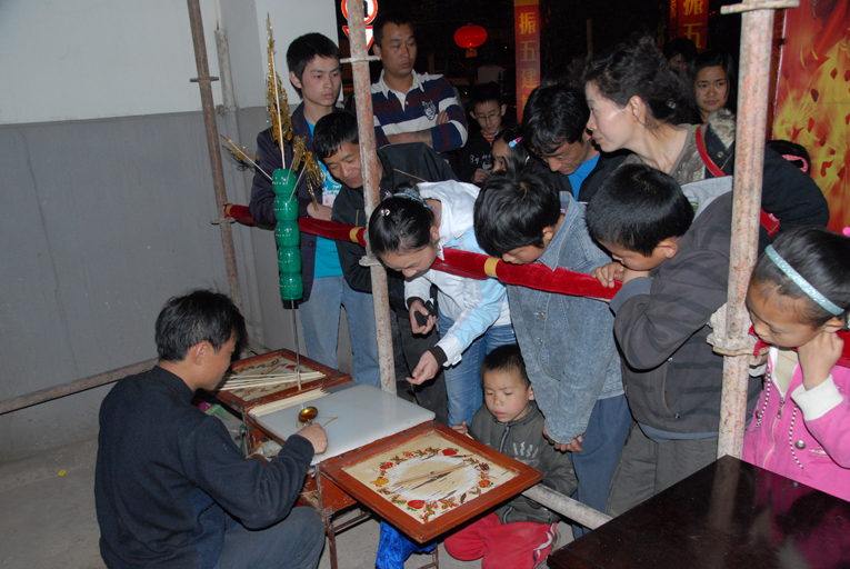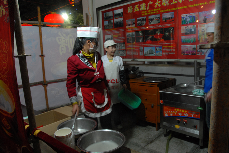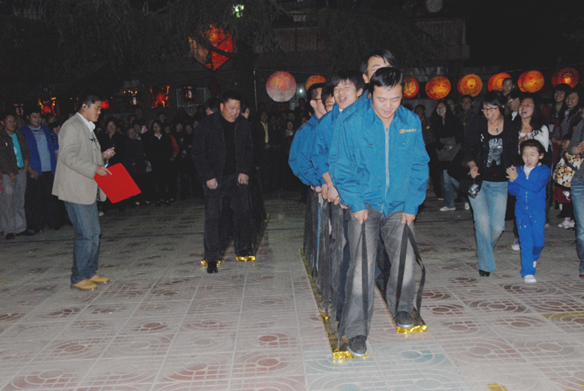 由基層各單位送來的參展作品異彩紛呈。最醒目的是主席臺旁的公司五大標志性建筑燈箱,新機場項目的詩詞是機場項目部工會主席楊應同志所寫的《念奴嬌.新機場建設有感》,表現(xiàn)了奮斗在工地上職工們的朝氣蓬勃;506分公司作品是他們自行設計的圖案,開頭是4,后面9個0,象征著公司今年要完成40個億的經(jīng)營任務;門上的兩個工藝精美的古典燈籠結(jié)合我們501分公司的一幢幢現(xiàn)代建筑,古樸中透著現(xiàn)代的氣息;第一個獲得魯班金像獎的505直管項目部的送來的作品立體又質(zhì)感;海天一色中揚帆的船寓意著家福人和,菊香明月,五建一帆風順……各式各樣的彩燈都表達著對五建公司的美好祝福。兩個集體趣味項目超級大腳板和抬氣球,分別由新機場項目部、景秀西苑項目部、502直管項目部和507分公司派出的代表隊參加,團隊的力量一目了然。民間藝人表演的《變臉》、《頂碗》和魔術(shù)《飛桌子》以及劃彩船、騎毛驢等傳統(tǒng)項目吸引了眾多的觀眾。燈謎區(qū)人頭攢動,同時進行的還有元宵湯圓和冰糖葫蘆大贈送;民間藝人現(xiàn)場表演了剪紙、草編、畫糖畫、捏面人等節(jié)目,他們的手工作品都現(xiàn)場免費贈送給大家。