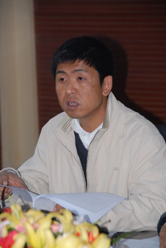 圖為公司經(jīng)營部副部長張棟梁在會上通報各單位2011年的經(jīng)營狀況
