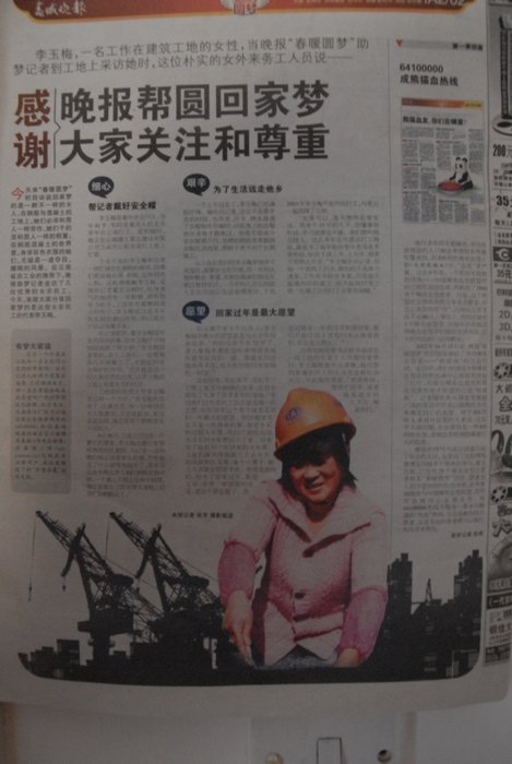 2013年1月28日春城晚報(bào)A2版02頁(yè)整頁(yè)報(bào)道了公司優(yōu)秀女農(nóng)民工李玉梅的回家夢(mèng)。