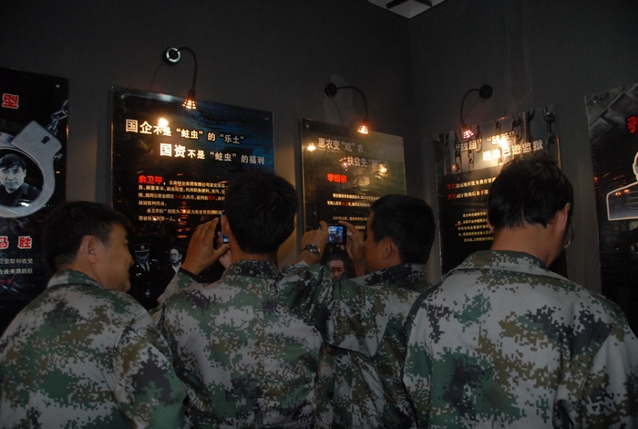 管理人員在警示廳進(jìn)行參觀