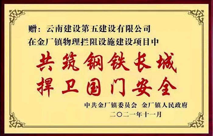 國之大者:公司金廠鎮(zhèn)物理阻攔設(shè)施項目獲政府表彰